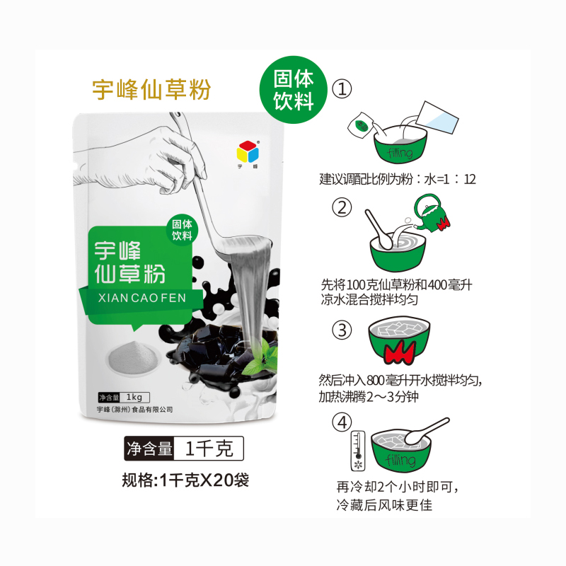 燒仙草三兄弟:①先把宇峰仙草凍100g放入出品杯杯底,接著雞蛋布丁100g,然后繼續加入80g宇峰仙草凍,后加入冰塊150g,再接著加入珍珠100g(目的是做出來分層好看)。②最后將調好的奶茶倒入即可。